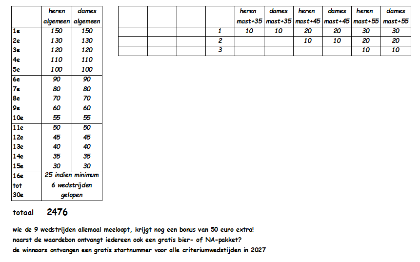 Kalender - Inschrijven - Prijzen - Tussenstand - Sponsors